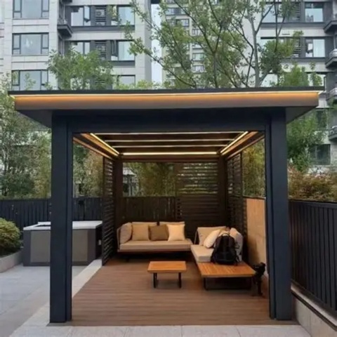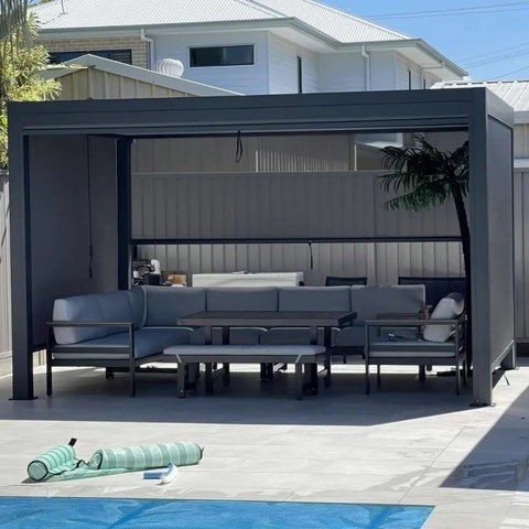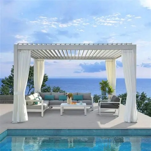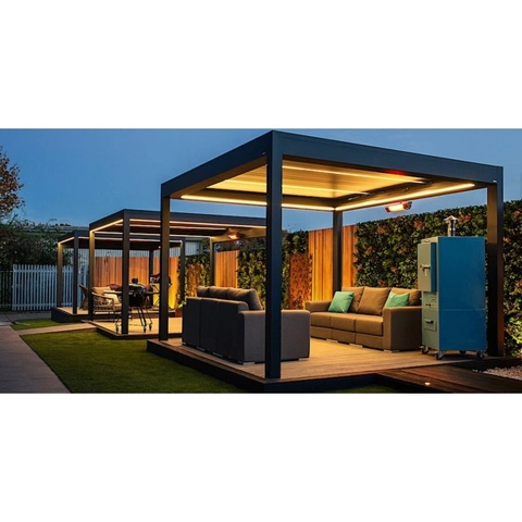 Outdoor Moderne Pergola Met Gemotoriseerde Aluminium Lamellen Dak Waterdicht Paviljoen Tuinhuisje Tuin Serre Prefab Glazen Huis