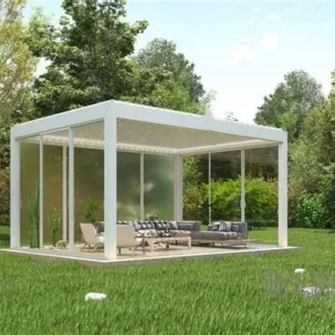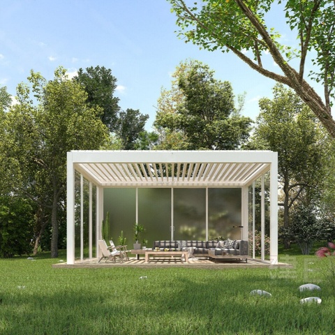Buiten Gemotoriseerde Aluminium Pergola Met Lamellen Dak Waterdicht Tuinhuisje Paviljoen Serre Serre Prefab Glazen Huis